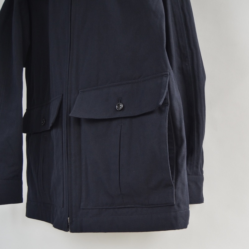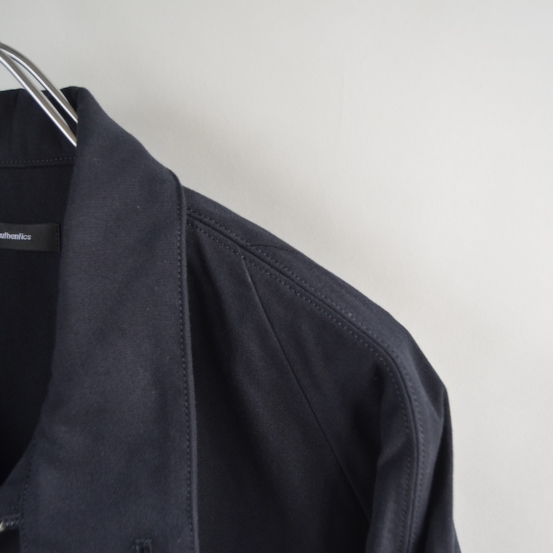 一見セットインに見えますが目を凝らすと肩線からラグラン線が伸びる複雑なセミラグラン仕様になっています。落とし込む素材は両口開口の低速レピア織機で空気を含ませながらゆっくり時間をかけて織り上げたオリジナルの尾州産ヘビーダブルクロス。