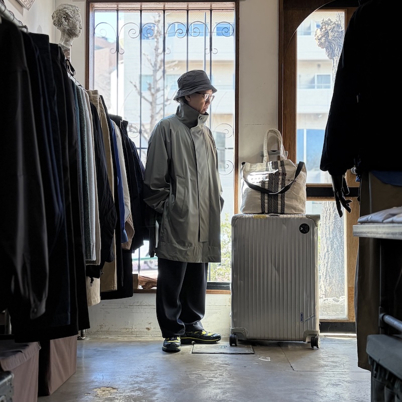 style-148 UNTRACE(アントレース)3Layer Stand Collar Coat_231-SAGE UNTRACE(アントレース)Straight-leg pull-on pants_243-DARK NAVY