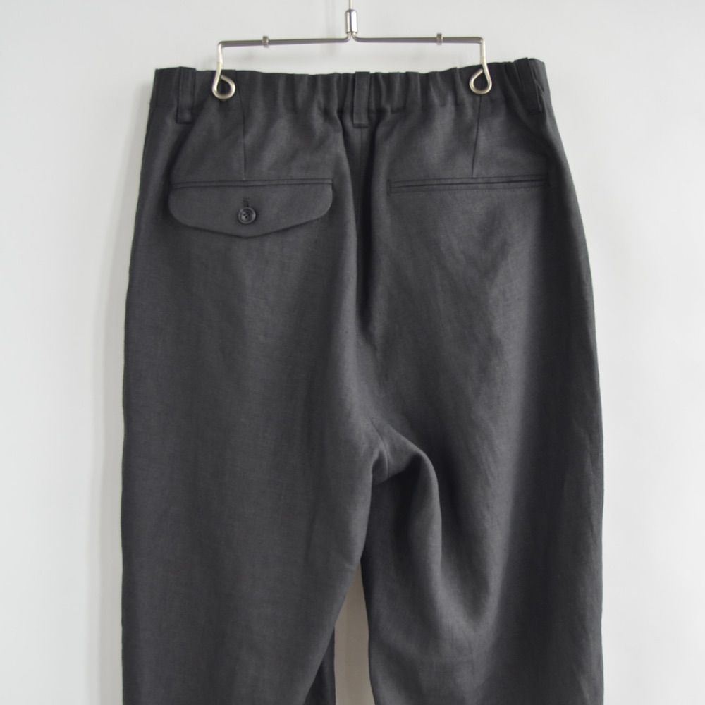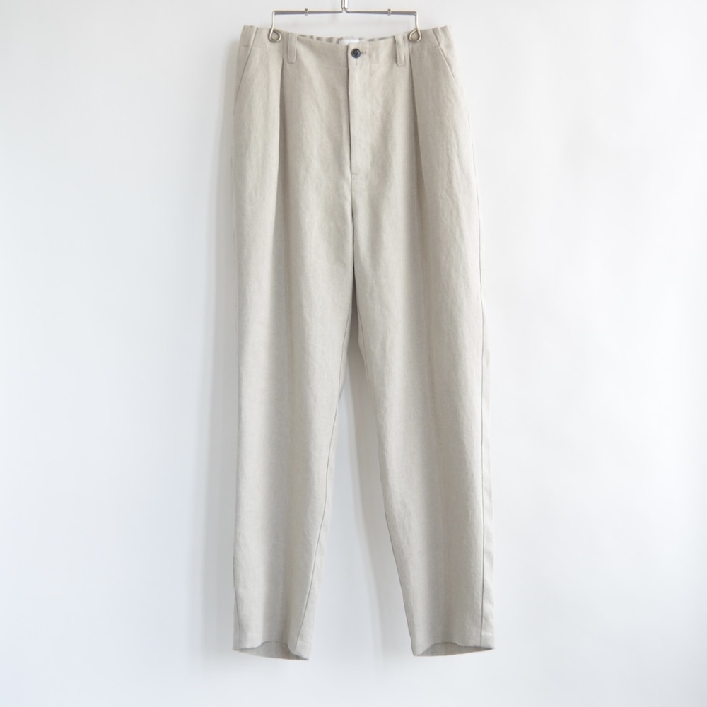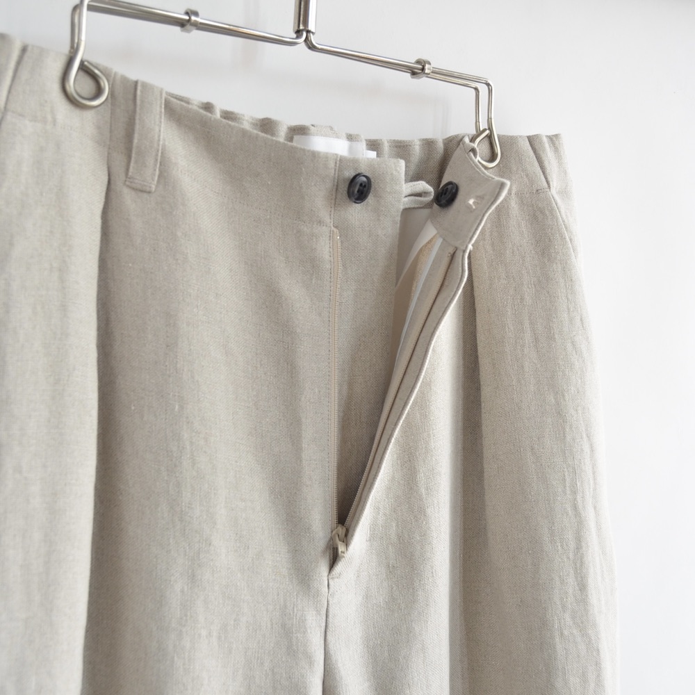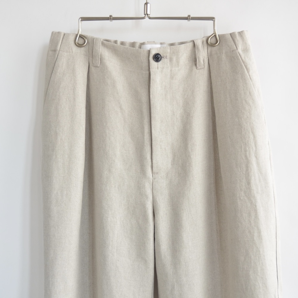 珍しいヘンプブレンドによる仄かにシャリっとした清涼感のある風合いと微かに残る杢っぽいの表情が特徴的な珍しい生地を使っています。