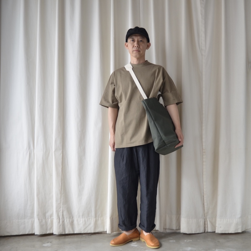 22ss-style-1 STILL BY HAND(スティルバイハンド) フードコートCO02221 FUJITO (フジト)C/N Knit Sweater WF1-K30 STILL BY HAND(スティルバイハンド)4タックテーパードパンツ PT05221 STILL BY HAND(スティルバイハンド)レザースリッポン GD03221