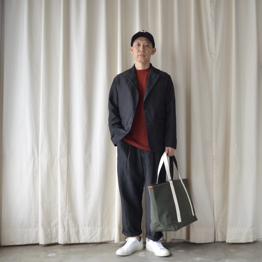 22ss-style-6 Jackman(ジャックマン)W/L Jacket JM8234 Jackman(ジャックマン)W/L Trousers JM4234 FUJITO (フジト)C/N Knit T-Shirt WF1-K15 J&S FRANKLIN(ジェイアンドエスフランクリン)BASIC TOTE OLIVE VEJA(ヴェジャ)ESPLAR LOW EXTRA WHITE Jackman(ジャックマン)Dotsume Baseball CapBlack