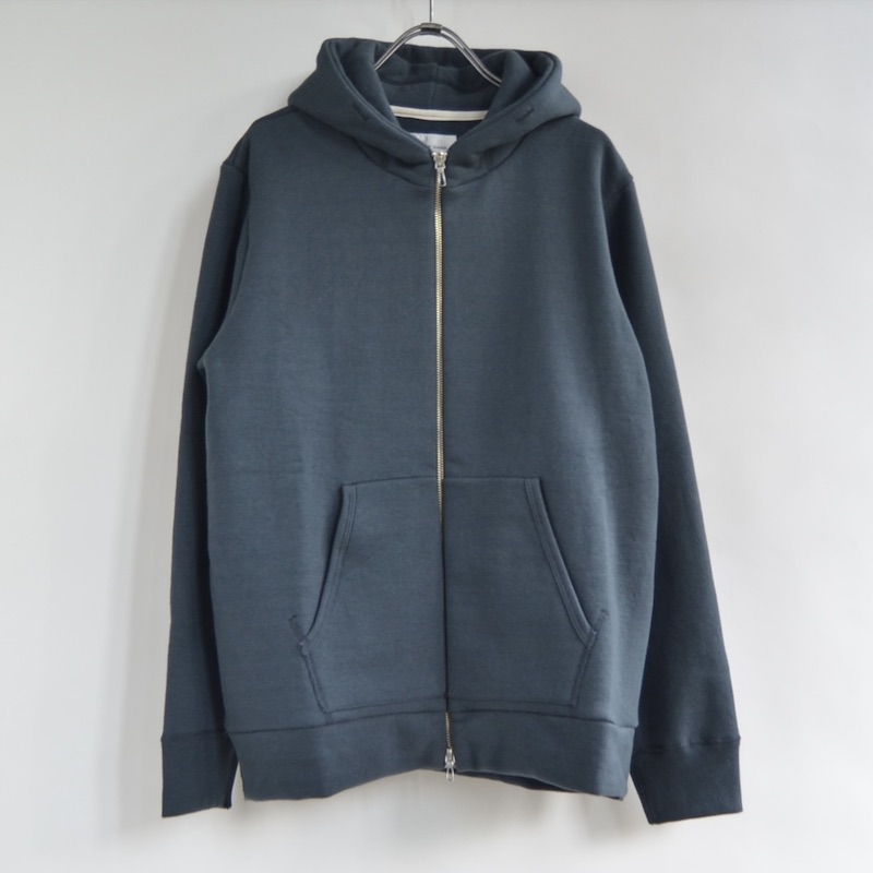 定番のジップパーカー。肉厚な裏毛は秋冬の羽織りとしてとても使い勝手の良いアイテムです。
